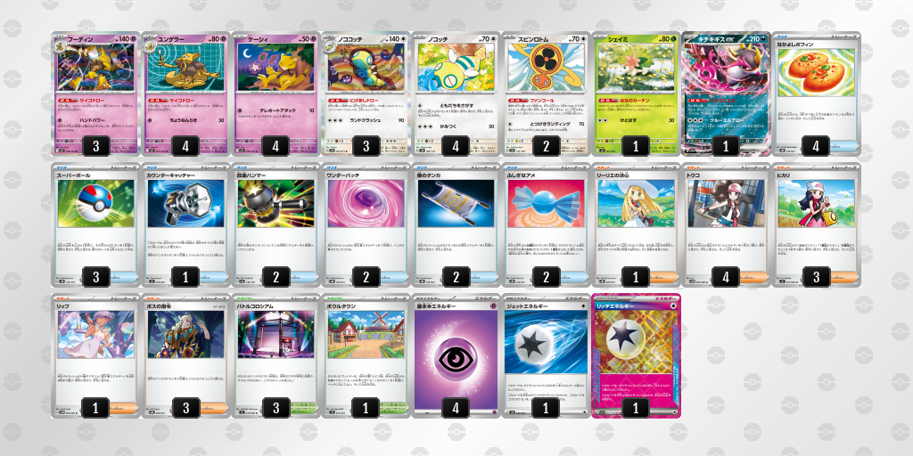 フーディンやノココッチの特性でどんどん手札を増やしてフーディンのワザを強くするデッキです